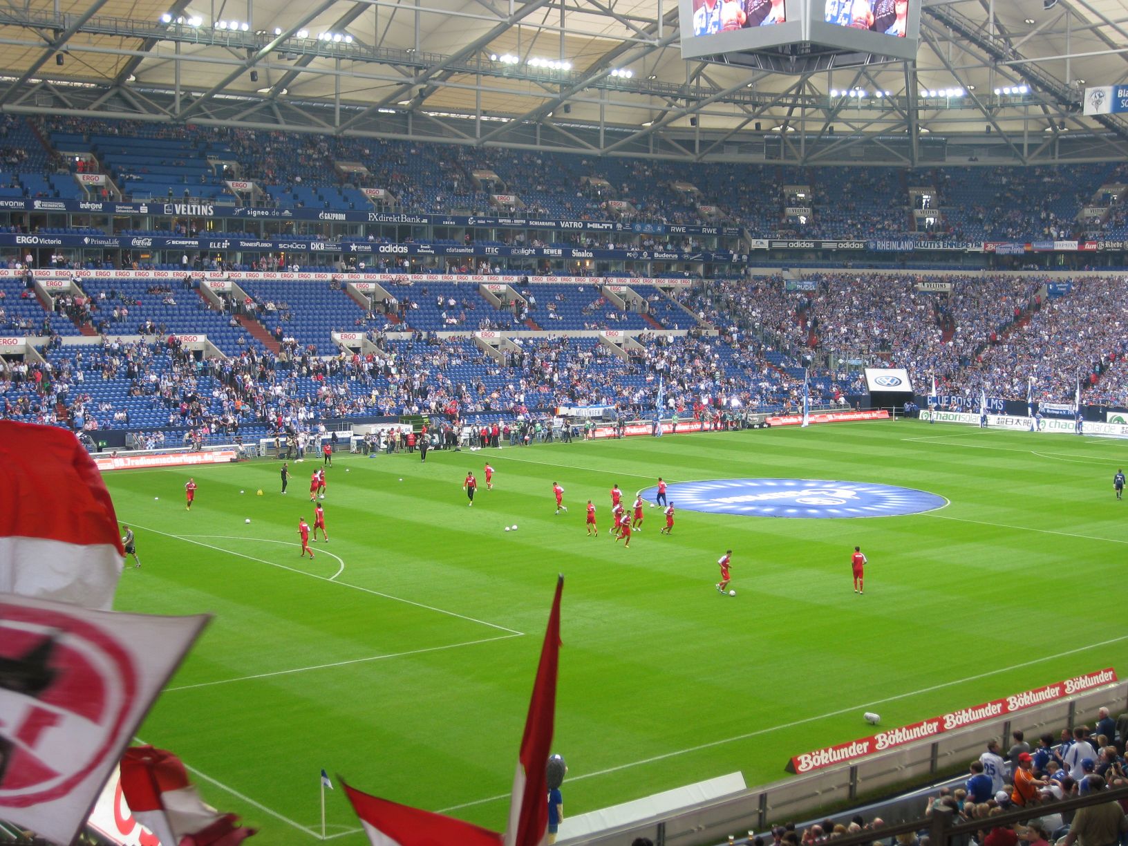 So gibt es einen riesigen Parkplatz direkt vor der Veltins-Arena und das Parken ist dort zusätzlich auch noch kostenlos. Bisher habe ich bei meinen Stadionbesuchen immer Parkgebühren zwischen 3 und 10 Euro bezahlen müssen.